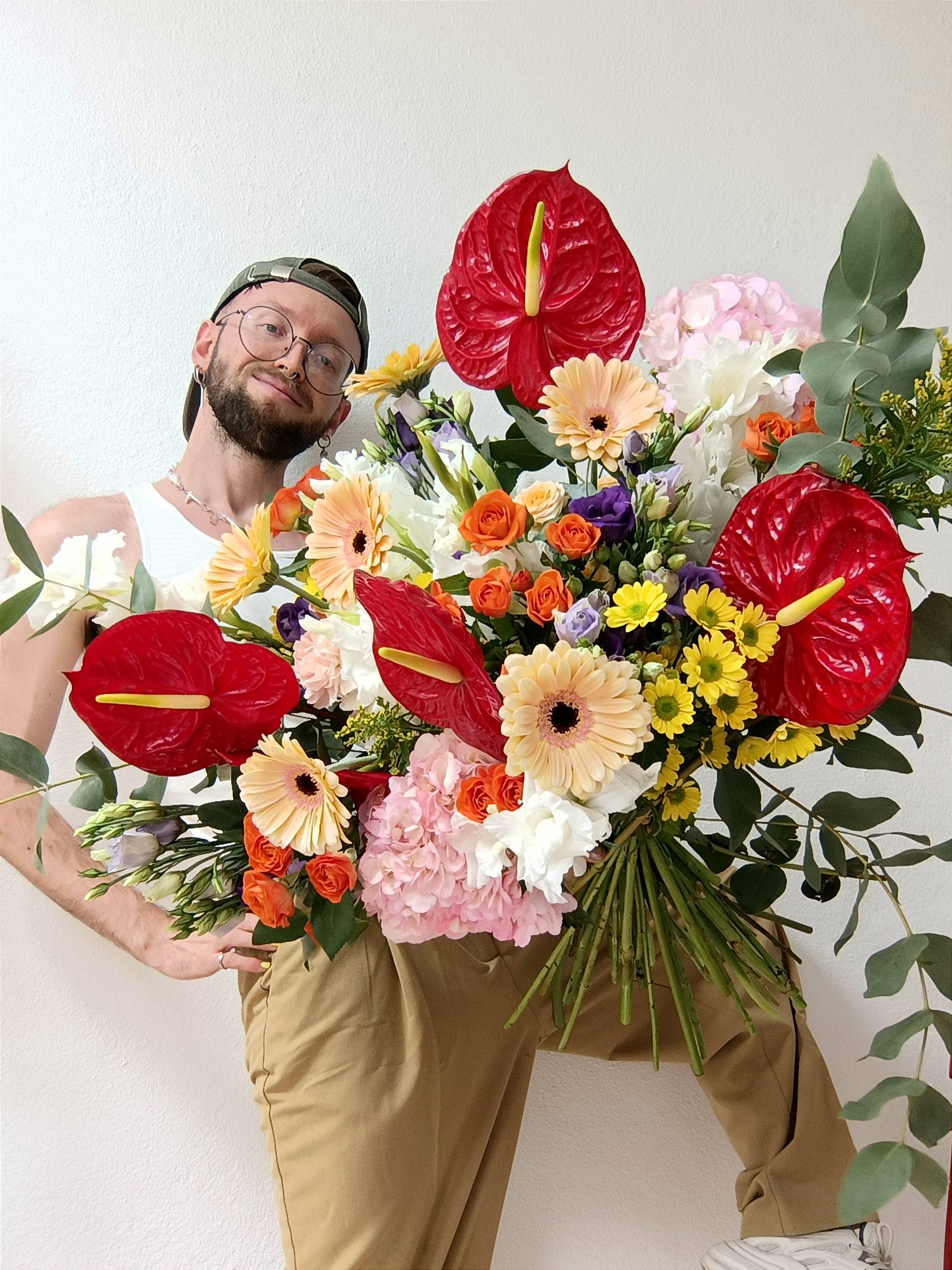 The COLORFUL BLEND (XL) is sure to impress with its stunning appearance and beautiful array of flowers. Elevate any occasion with this gorgeous arrangement that will leave a lasting impression.