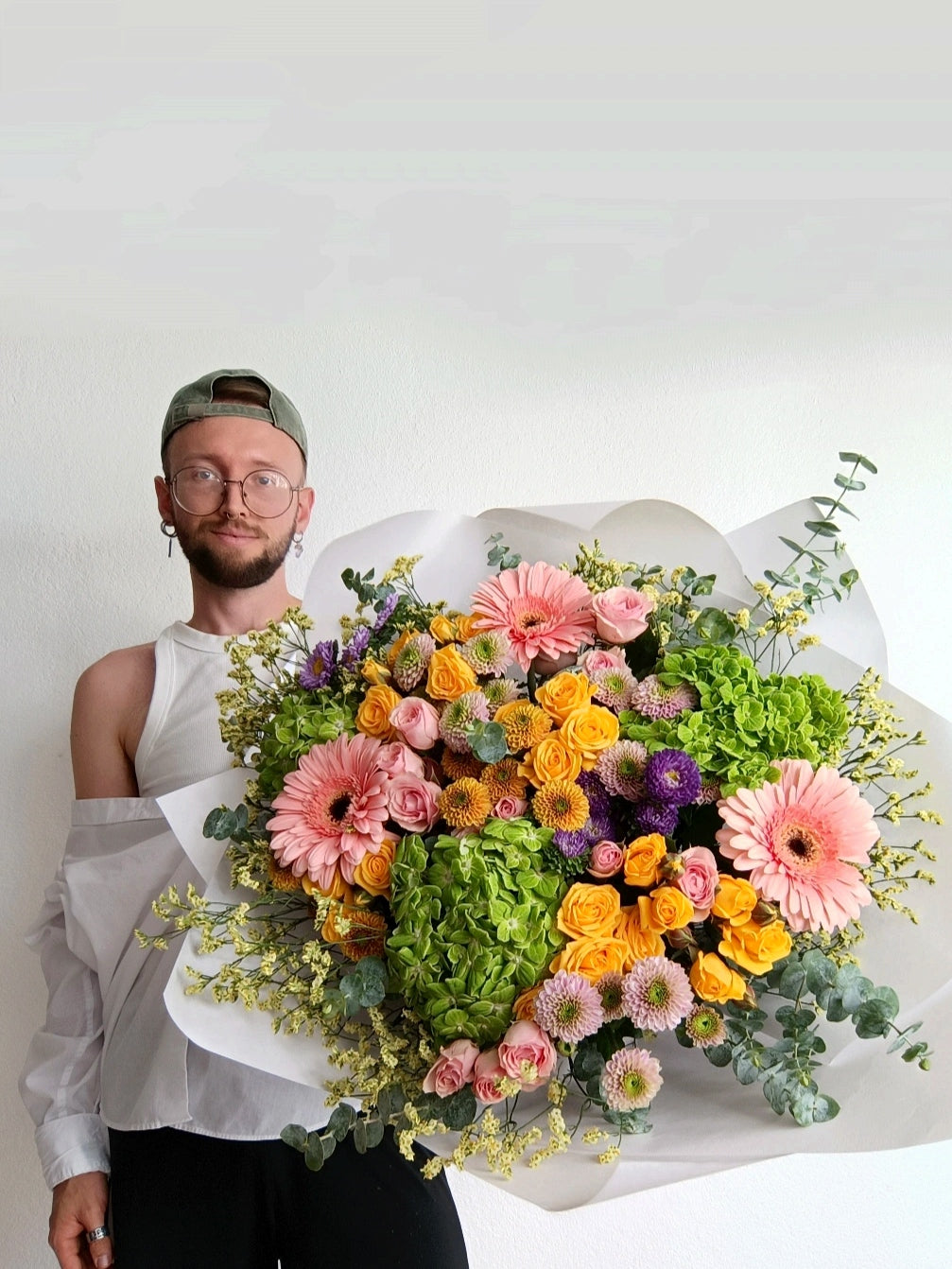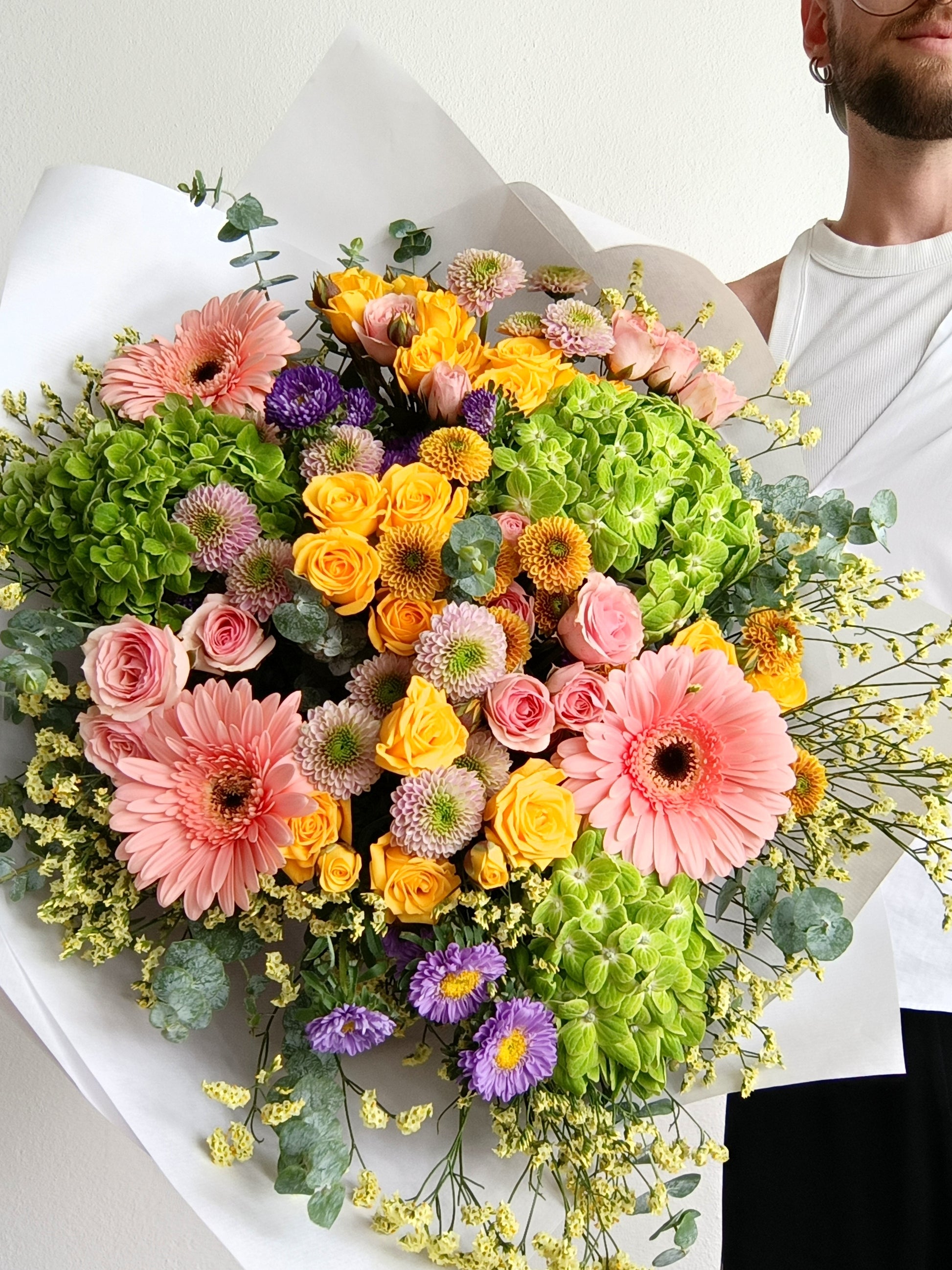 Este buquê alegre traz beleza e alegria em massa! Coloque um sorriso no rosto de alguém com esta mistura de cores dinâmica e deliciosa! É o estimulante perfeito!