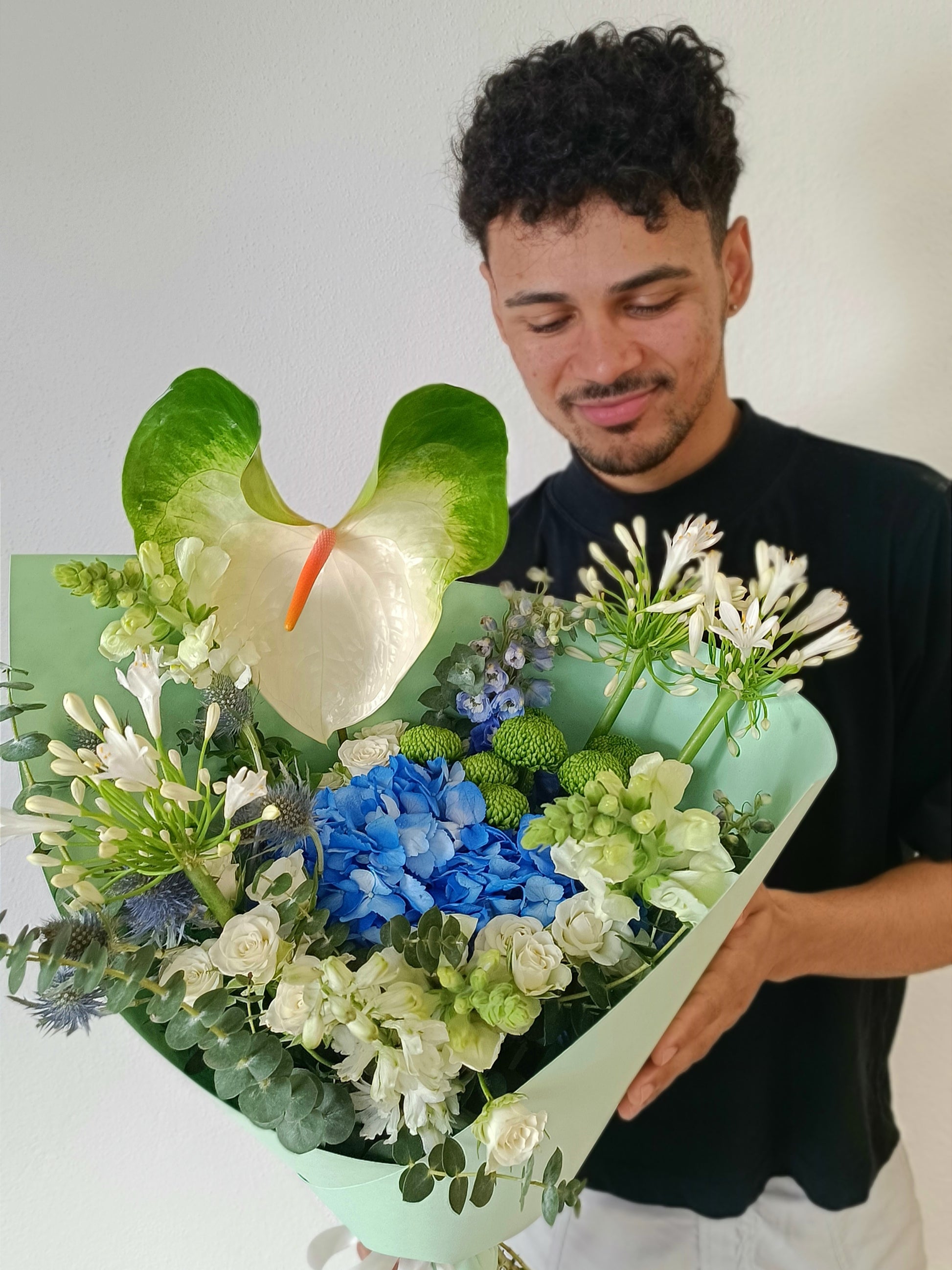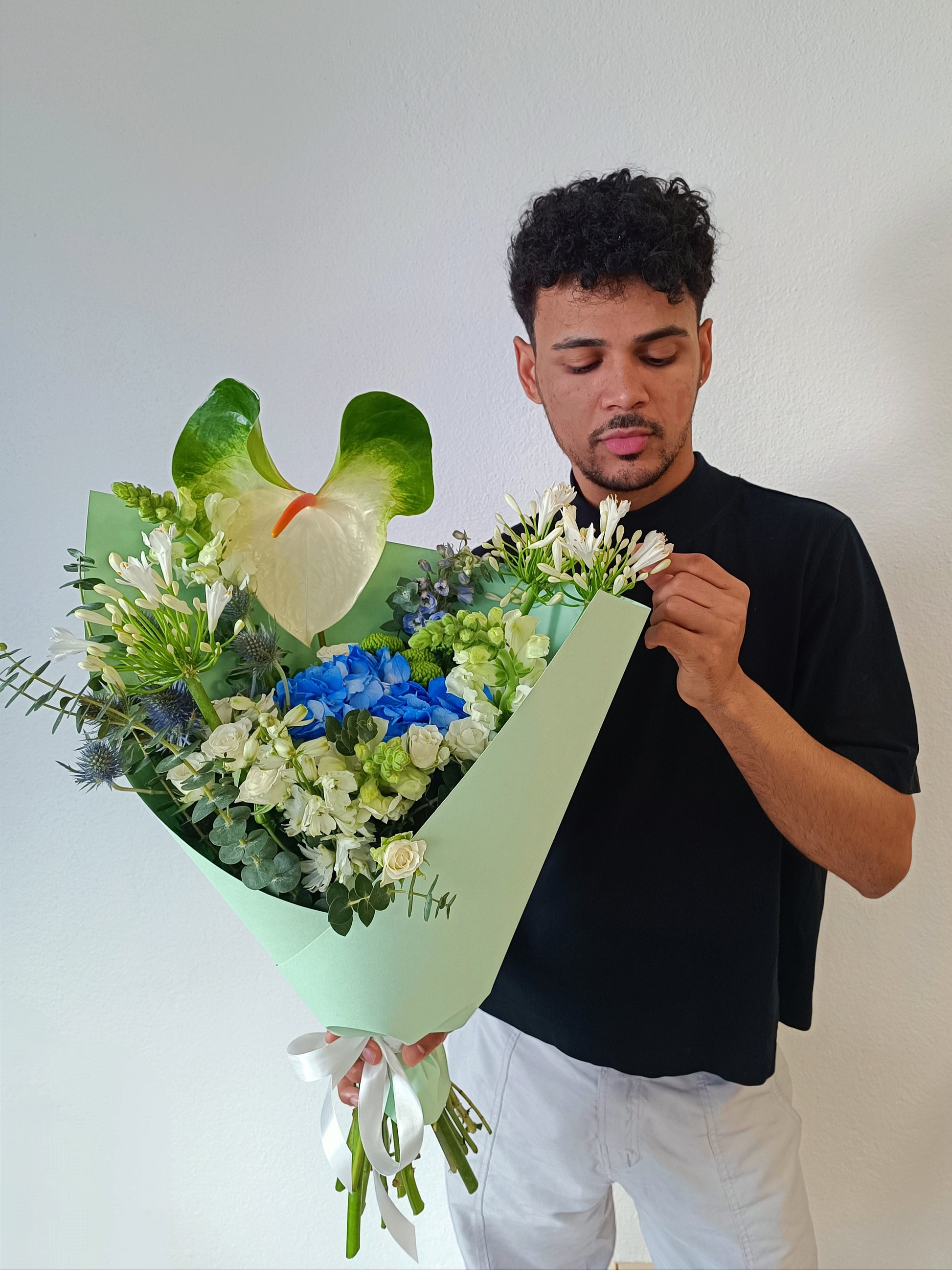 GREEN BLEND (M) is a lush garden bouquet that creates a stunning visual effect. Just enjoy natural movement of flowers.