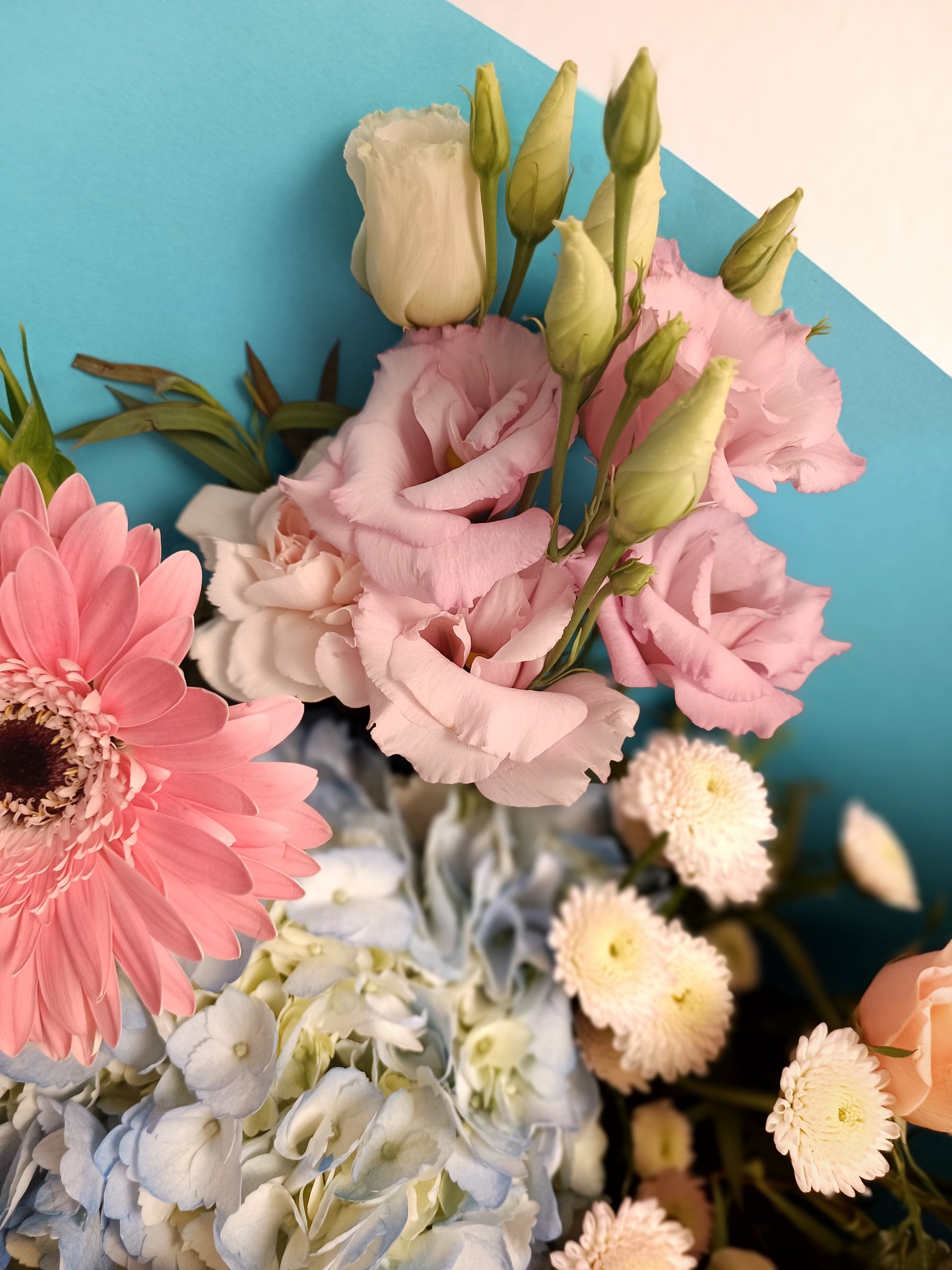 This vibrant blend of pink and blue flowers is the perfect summertime mood. This playful mix of flowers is sure to bring a smile to your face. Perfect for parties, gifts, or just brightening up a room. 🙌☀